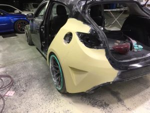 フロント同様、マスキングしてファイバーでベースづくり。