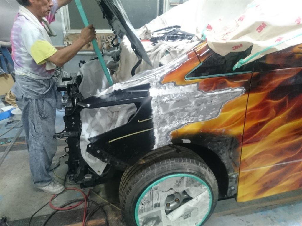 本日は、夏休み前と同じく、ヴェルファイアの顔面移植!!!