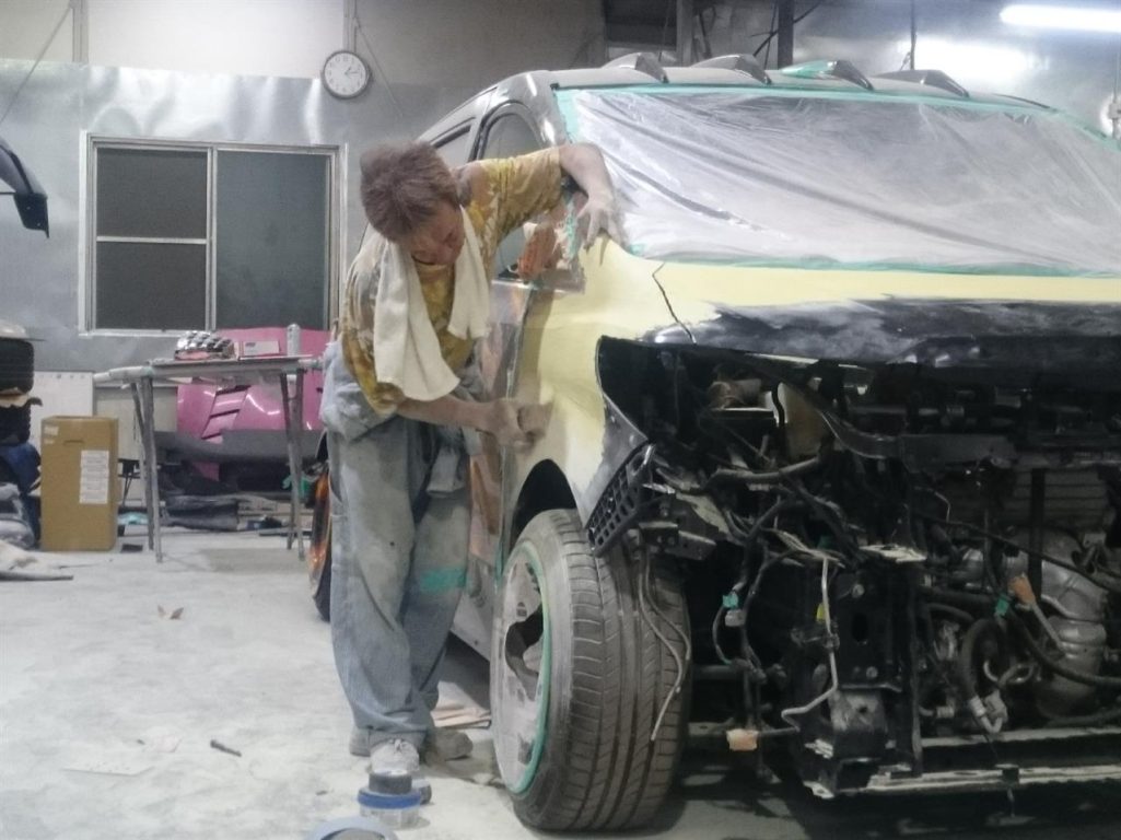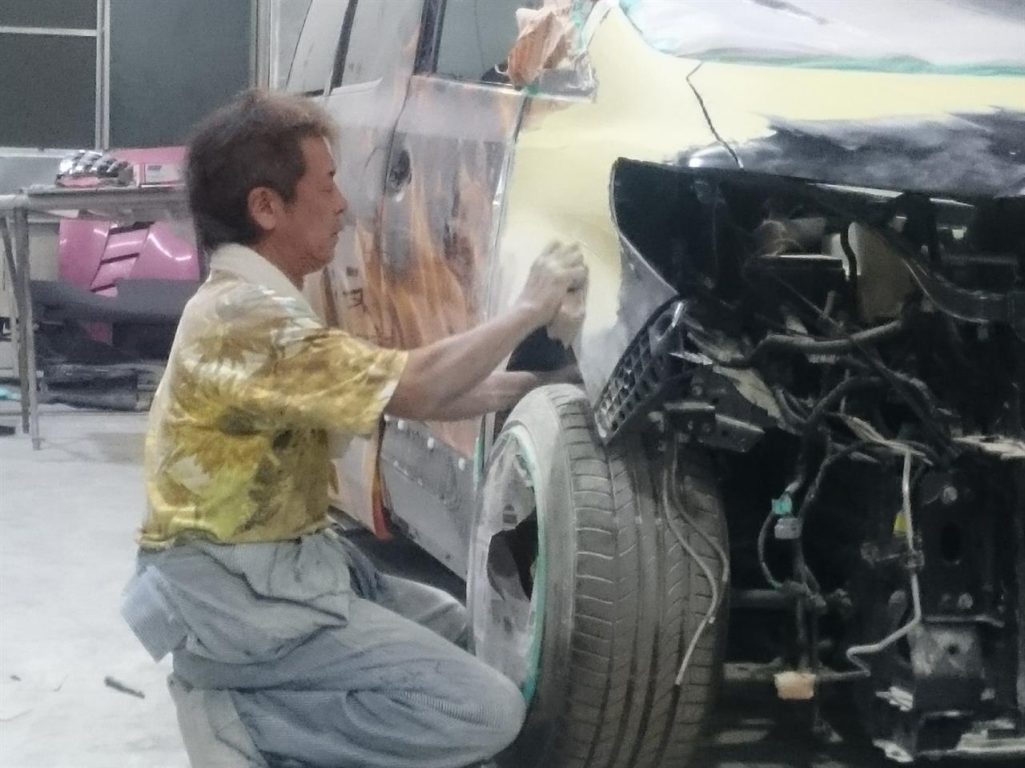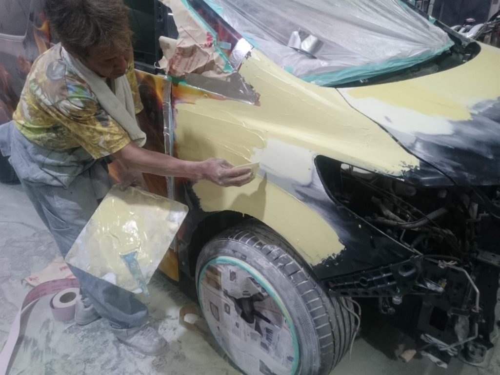 写真だとまったく伝わらないでしょうけど、フェンダーのプレスライン、かなり苦労しましたよー!!