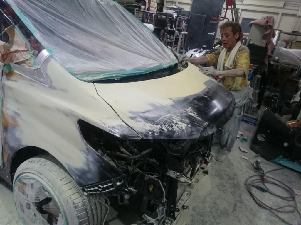 前回はこちら→『『堀越STYLE・ヴェルファイア』!!30アルファードの顔面を移植!!パテに入りまーす!!!』