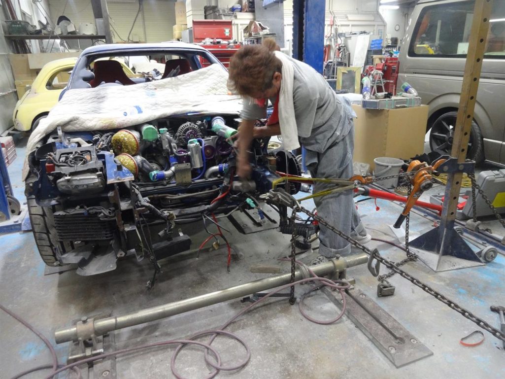 以前に修理した板金屋さんが直しきれなかったのか直さなかったのかはわかりませんが、今回はオールペンと同時に、ここもバッチリ修正しちゃいます!!