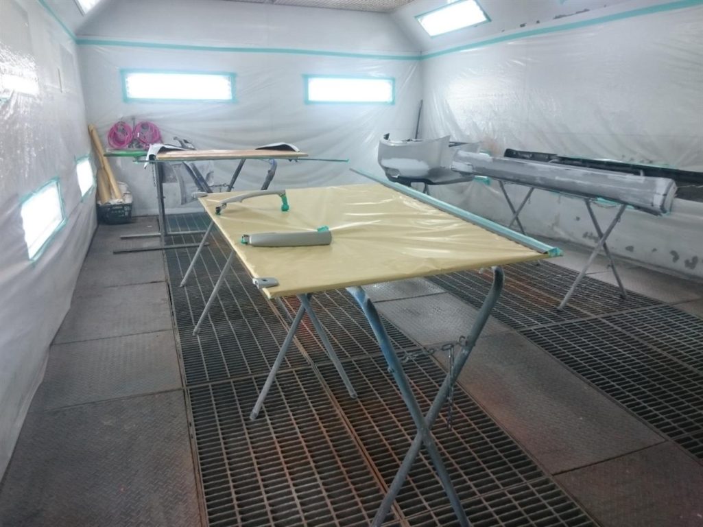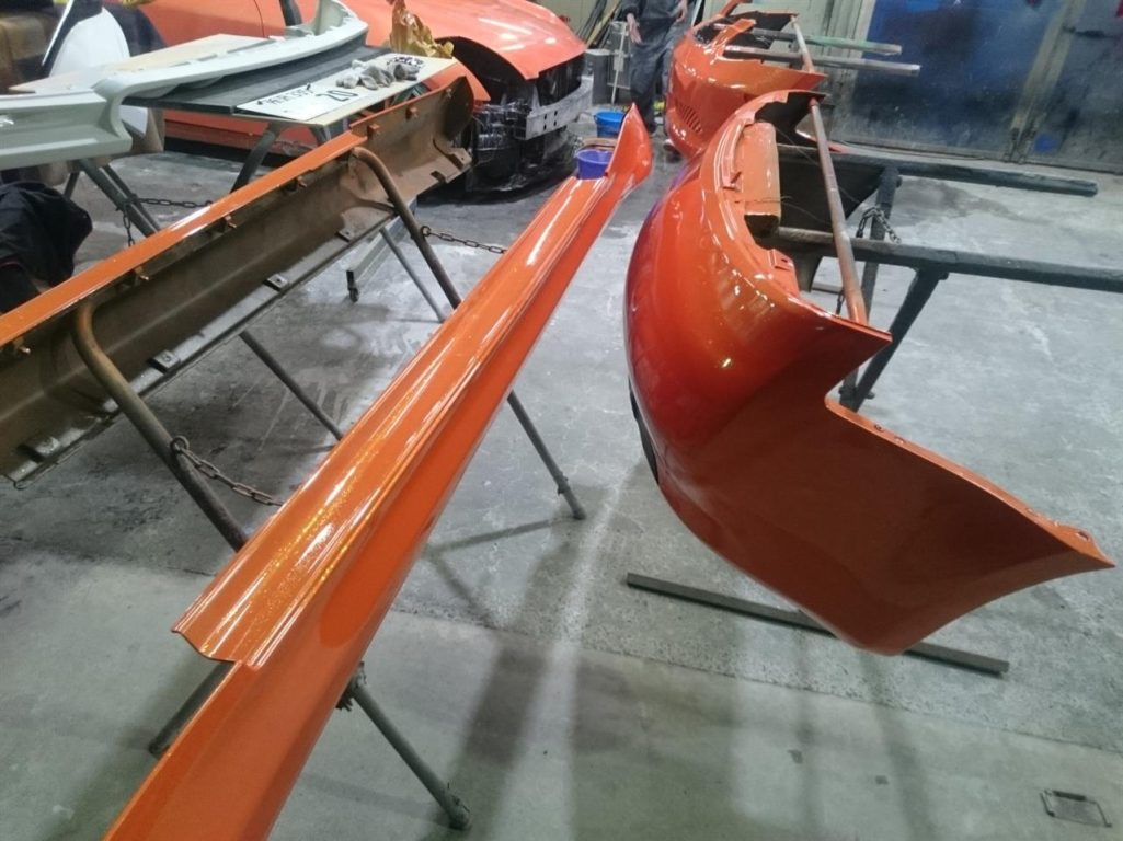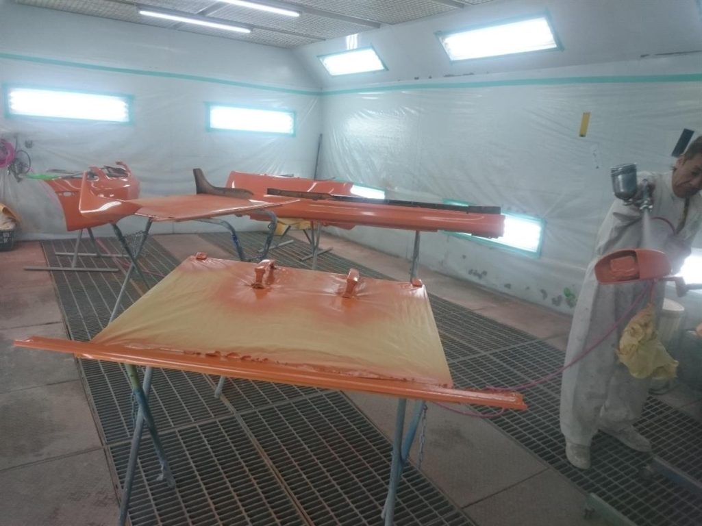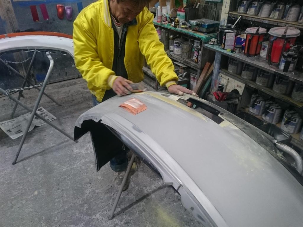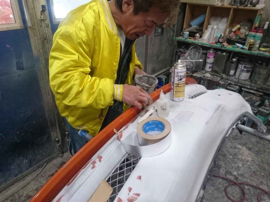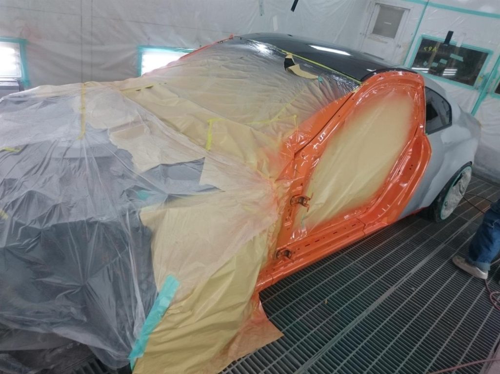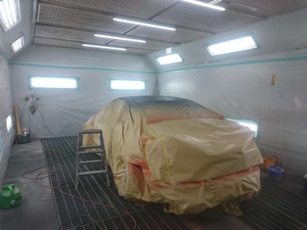 中塗りが終わったボディは、ドアなどを組み付けて外側の塗装の準備!!