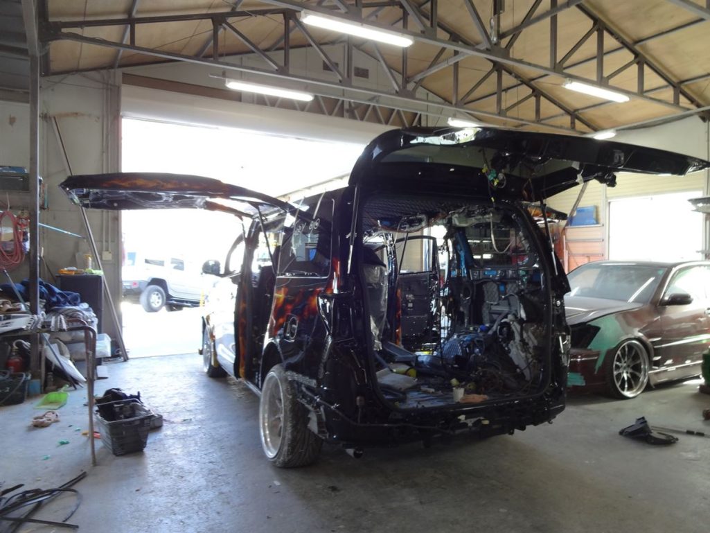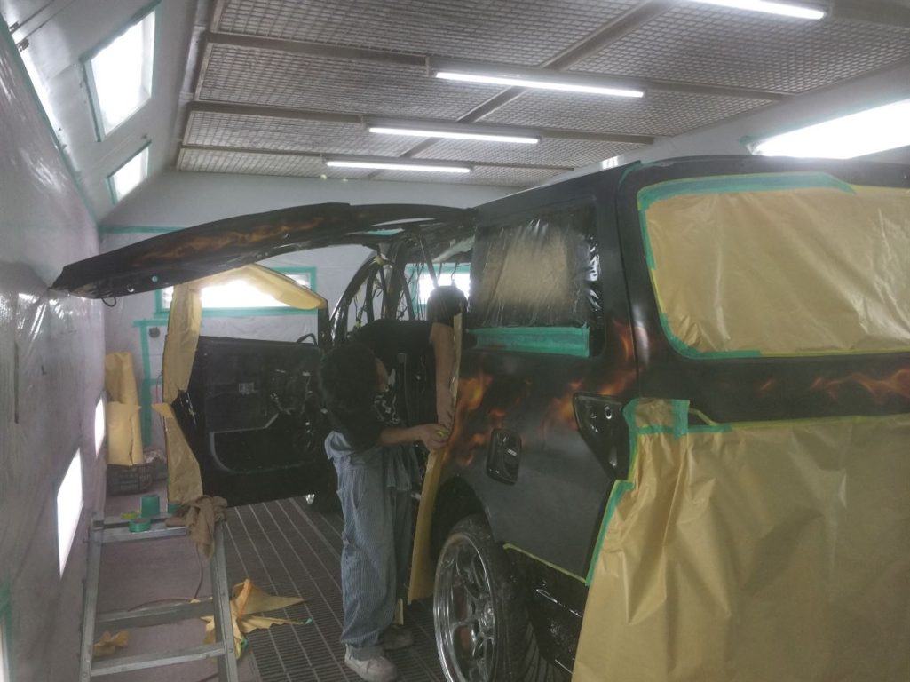 本日は、バーフェン仕様ヴェルファイアのリアドア加工の続き!!