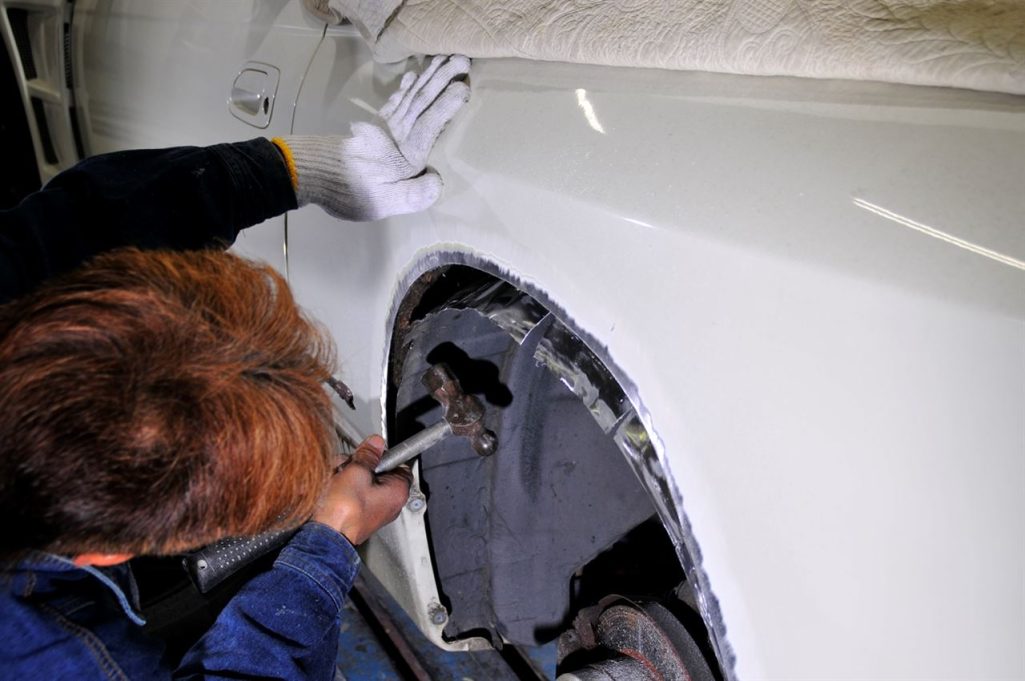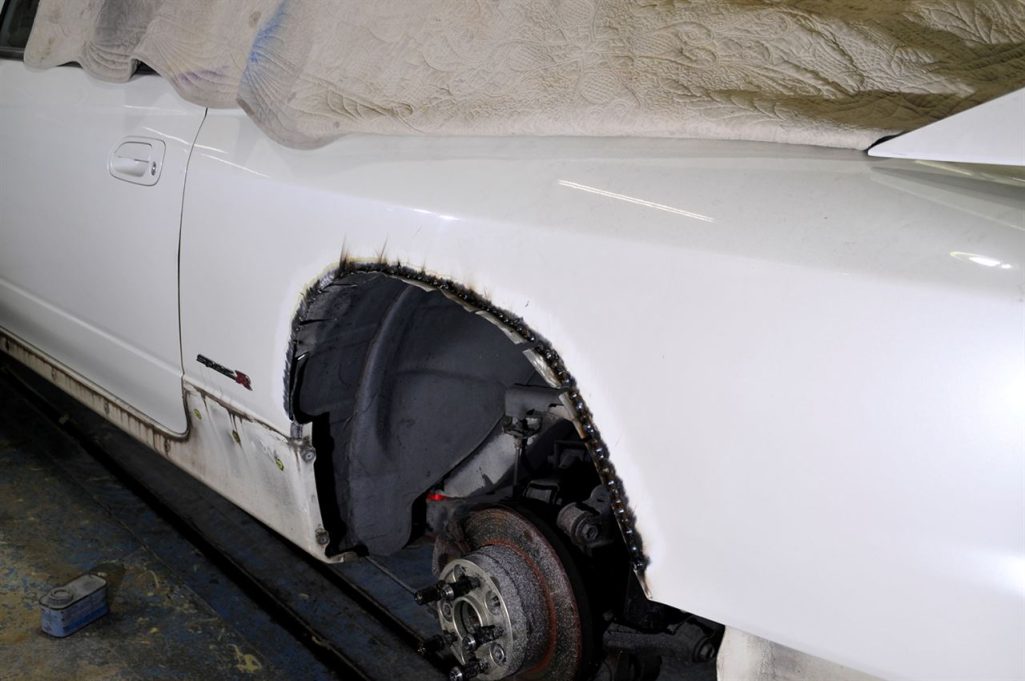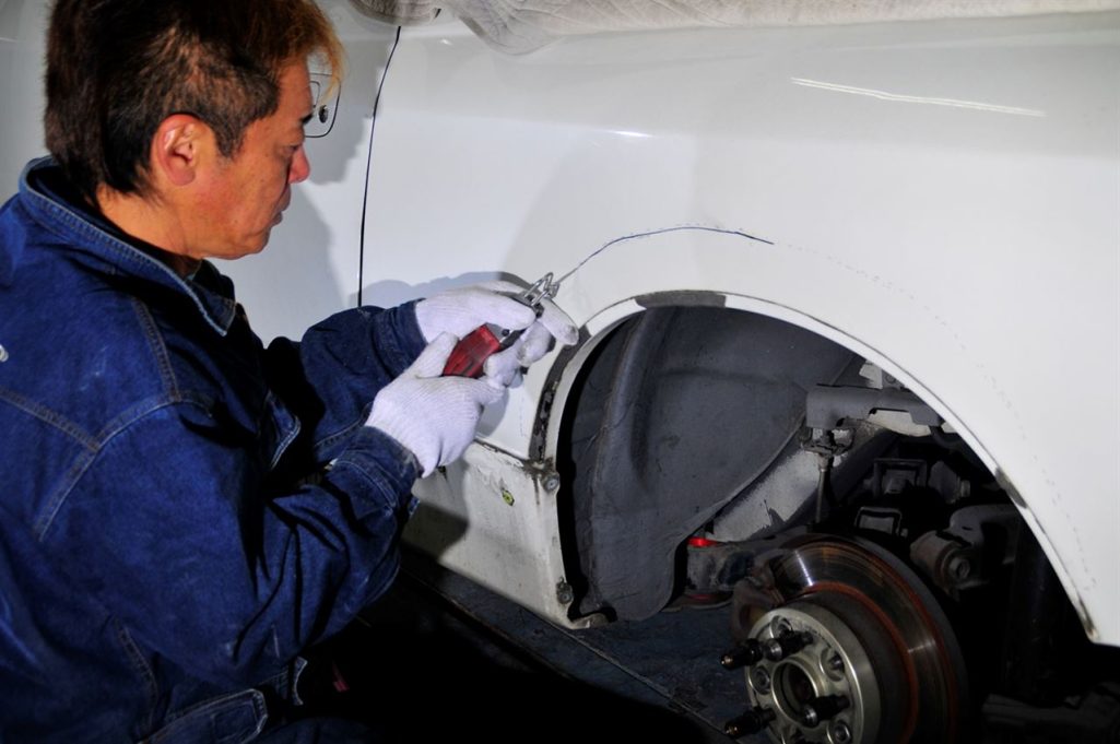 リアのフェンダーって大雑把に説明させていただくと、普段皆さんが目にしている外側のパネルと、内側に隠れてしまっているパネルの二枚のパネルが合わさって出来ているんです。