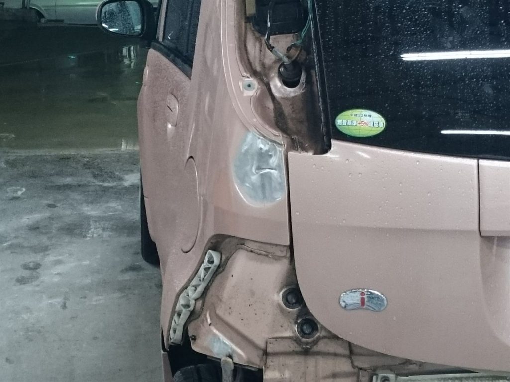 左のテールランプと、そのすぐ下の部分が損傷しております!