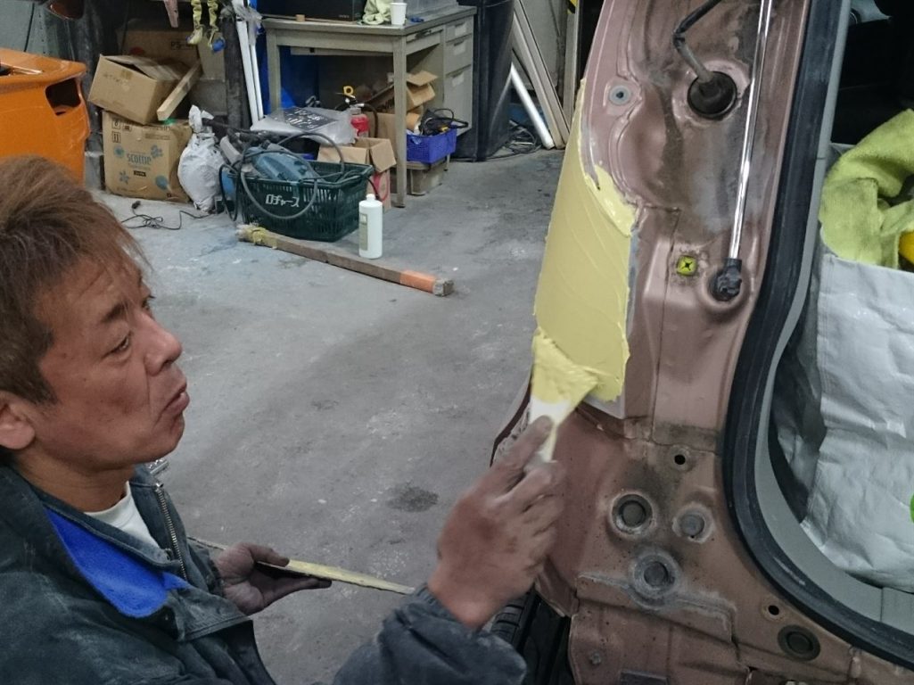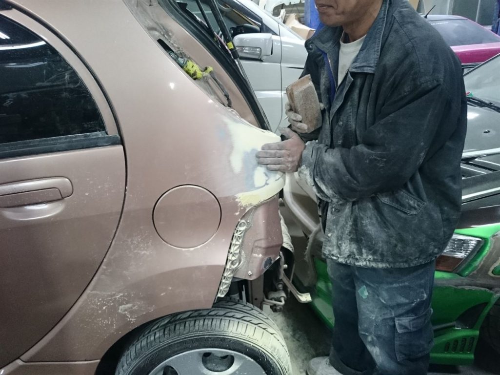 そこからさらに、仕上げのパテを…