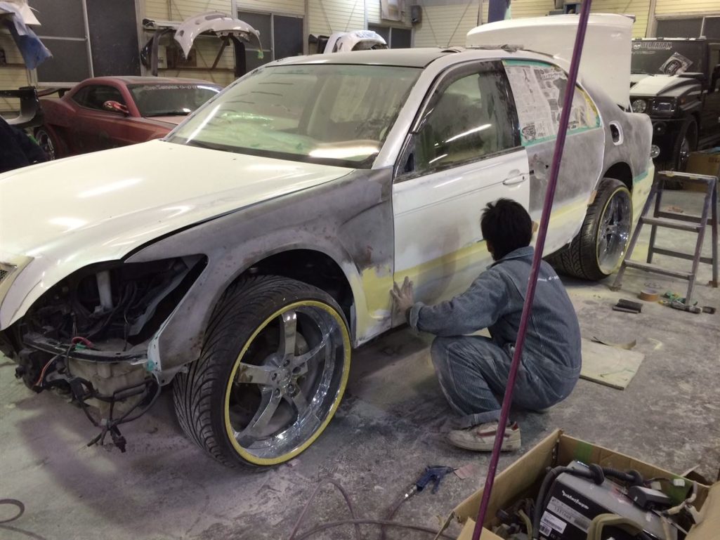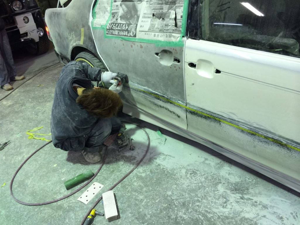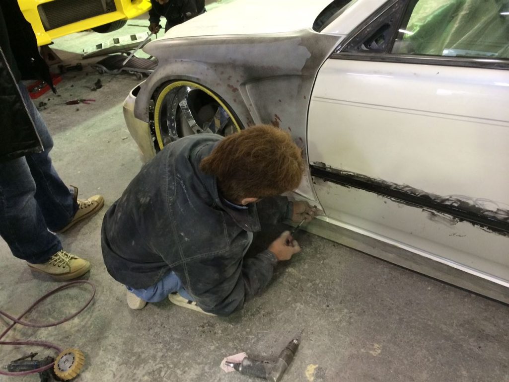これは、サイドステップとフェンダーのガーニッシュの仕上げ中…