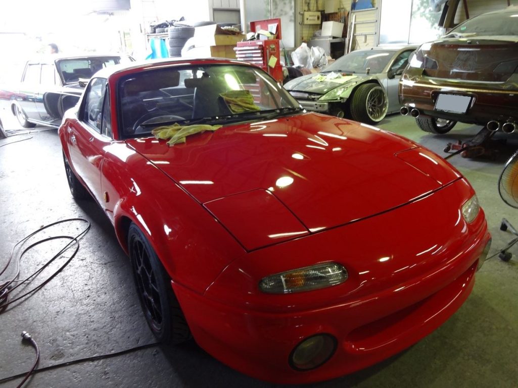 本日は、『マツダ ユーノスロードスター(NA)』のドア修理&オールペンですっ!