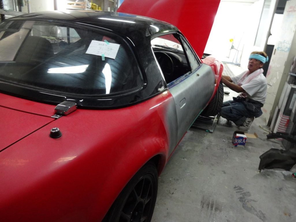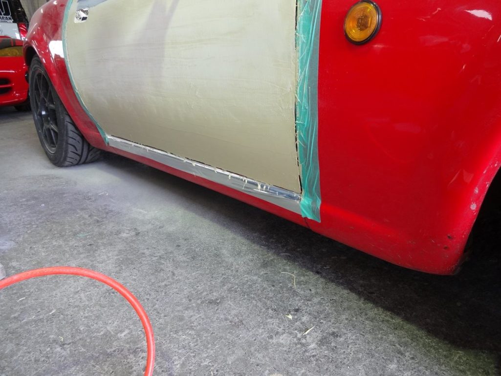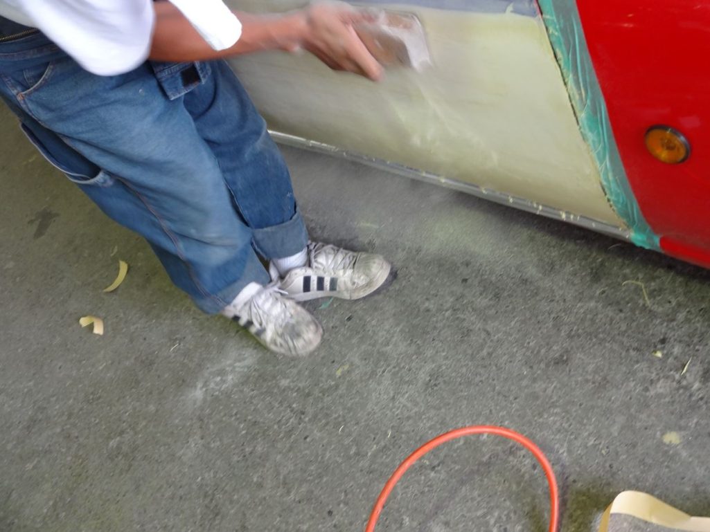 さっそく板金作業を進め、もうパテまで入りましたー。