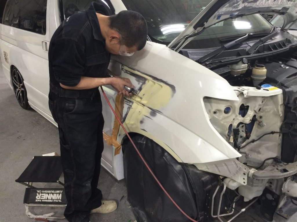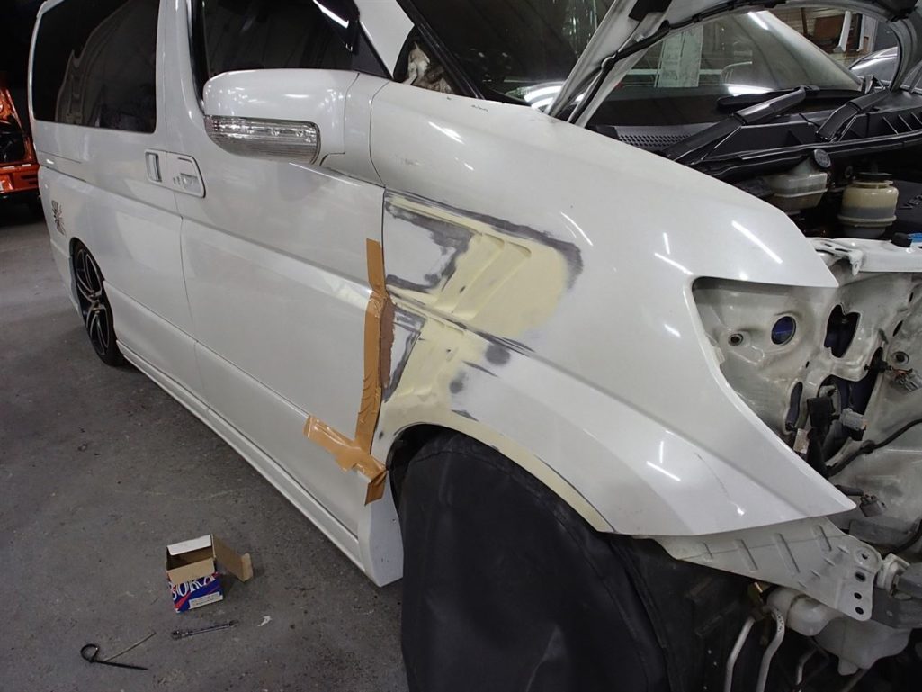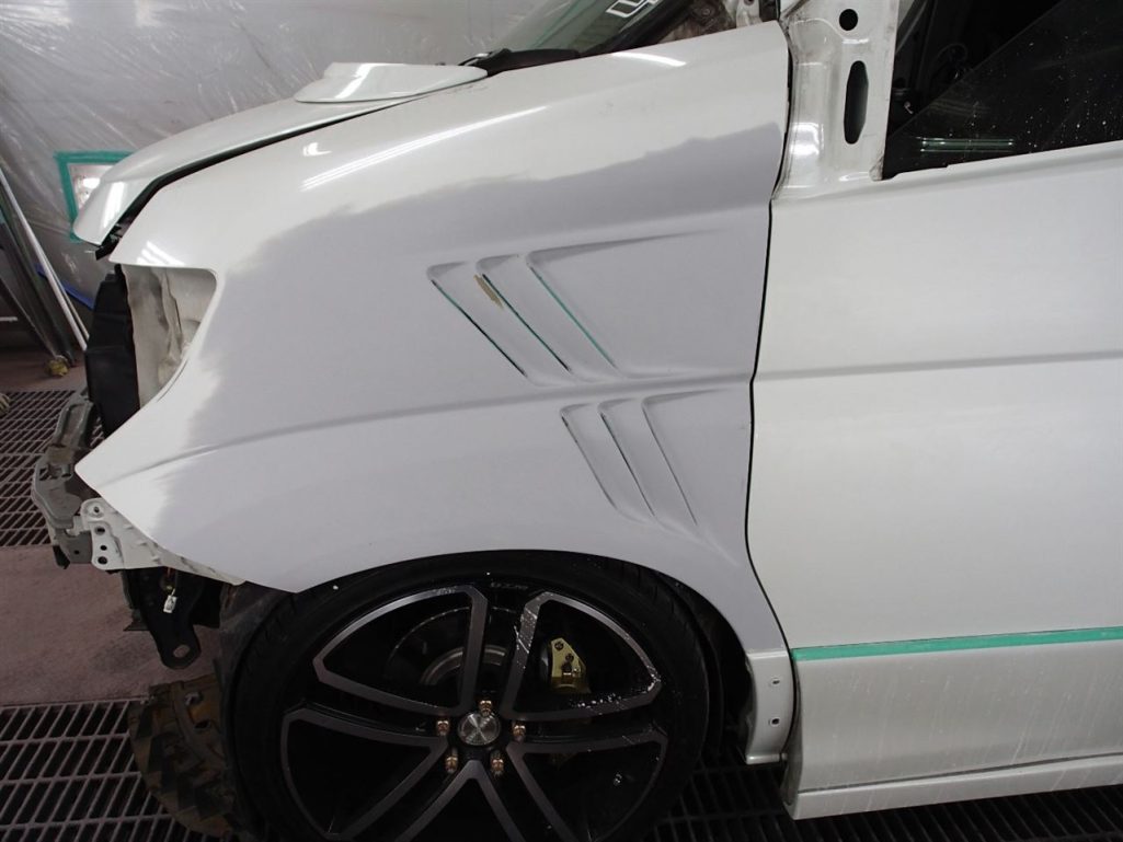 本日は、エルグランドのワンオフフェンダーダクト加工の続き!!