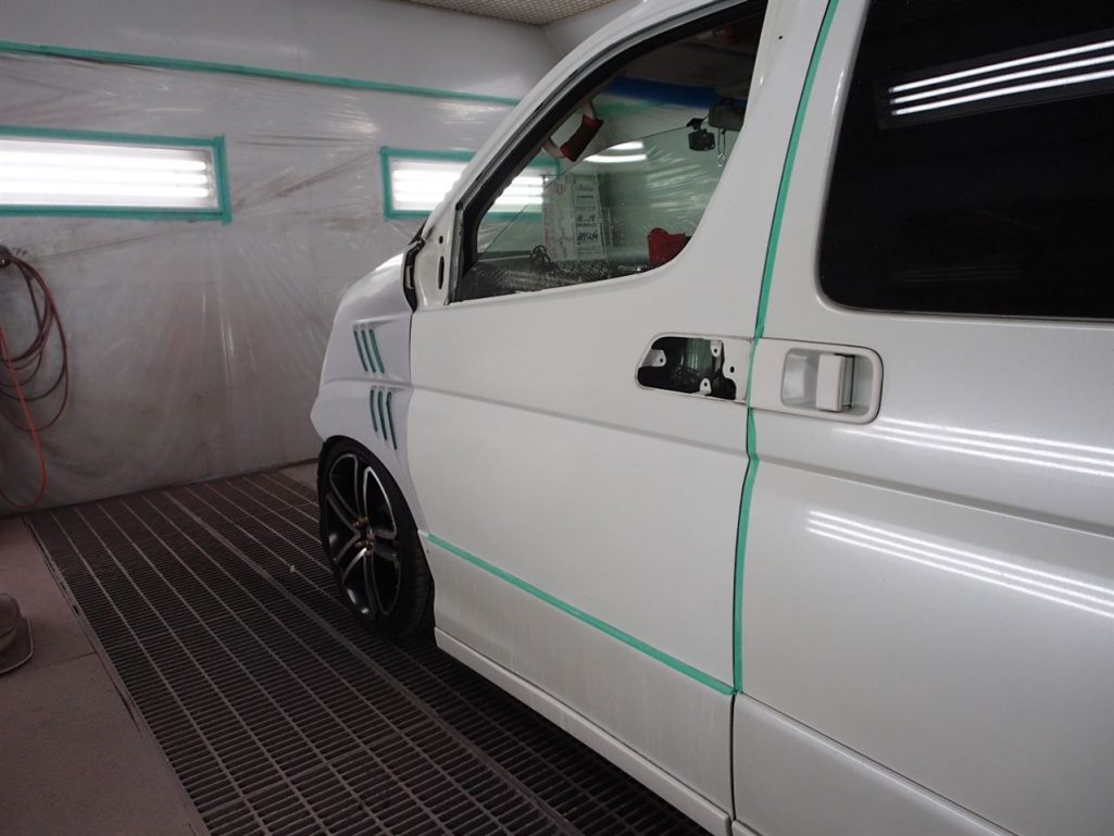 フェンダー単吹きですと色が合わないので、ドアでぼかしまーす♪