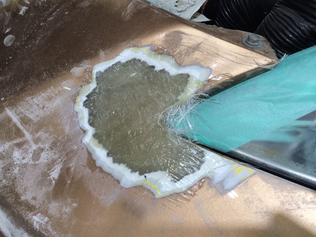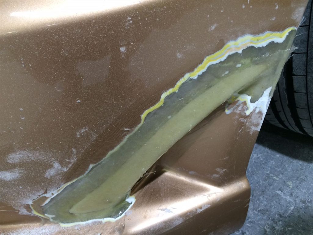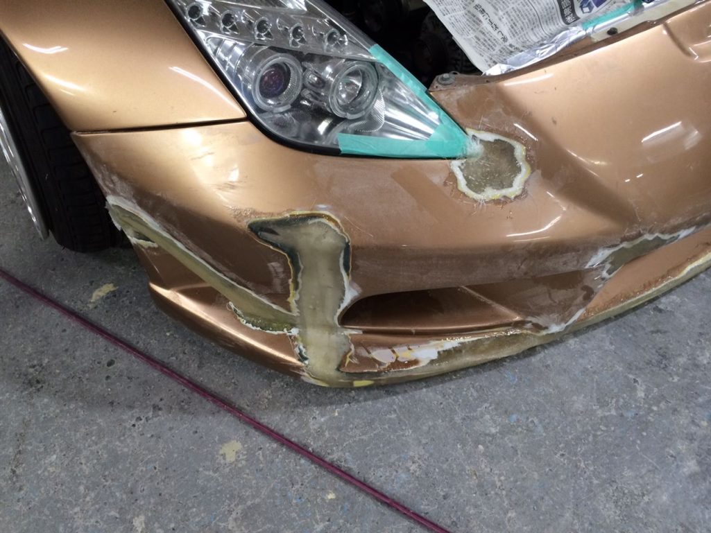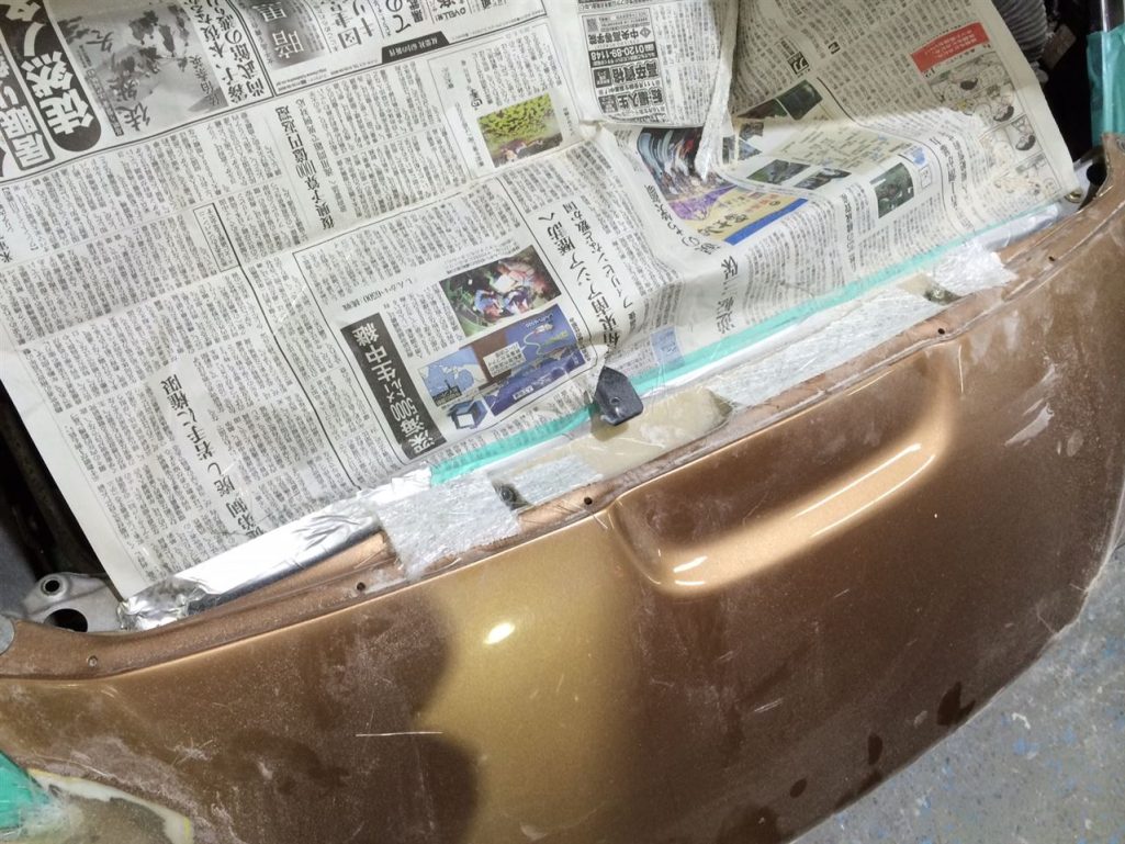 ここの修理方法としては、FRPの板とバンパーを接合します!