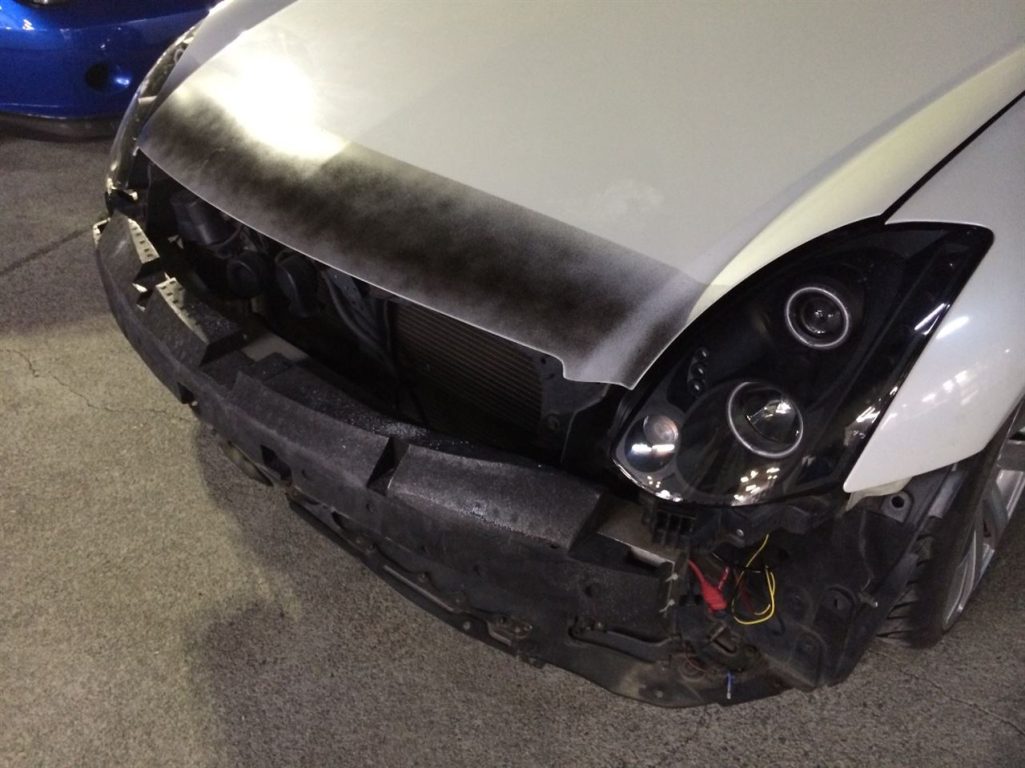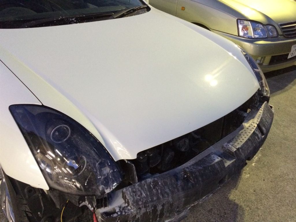 ボンネットの塗装の修理と、フロントバンパーのフェンダー取付部分の修理となります!