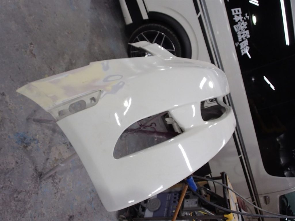 まずはバンパーを外して、千切れている部分をつないでパテで仕上げ!!