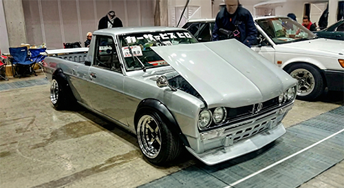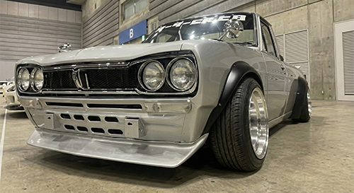 正面から見れば、まさに名車ハコスカ。サニートラックの特性を熟知したプロフェッショナルが、違和感のない究極のフェイススワップを実現しました。