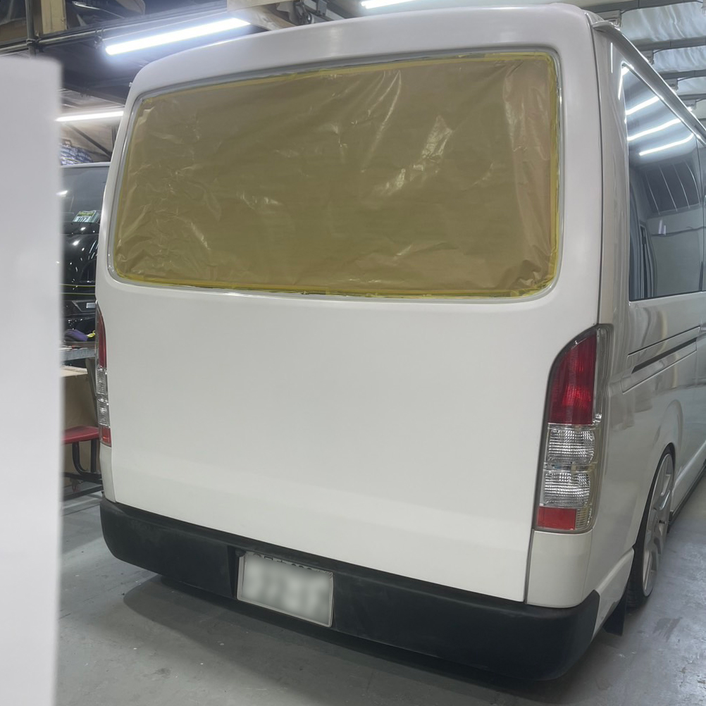 ハイエースのリアゲートの鉄板はかなりのくせ者です。丁寧に鉄板を張り付けてスムージング加工しても後々変形したりすることがあります。